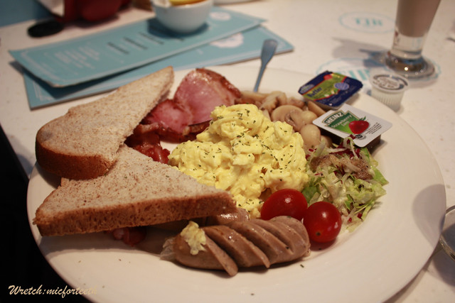 全麥吐司.炒蛋.炒蘑菇(愛死了我).生菜.培根.火腿.德國香腸